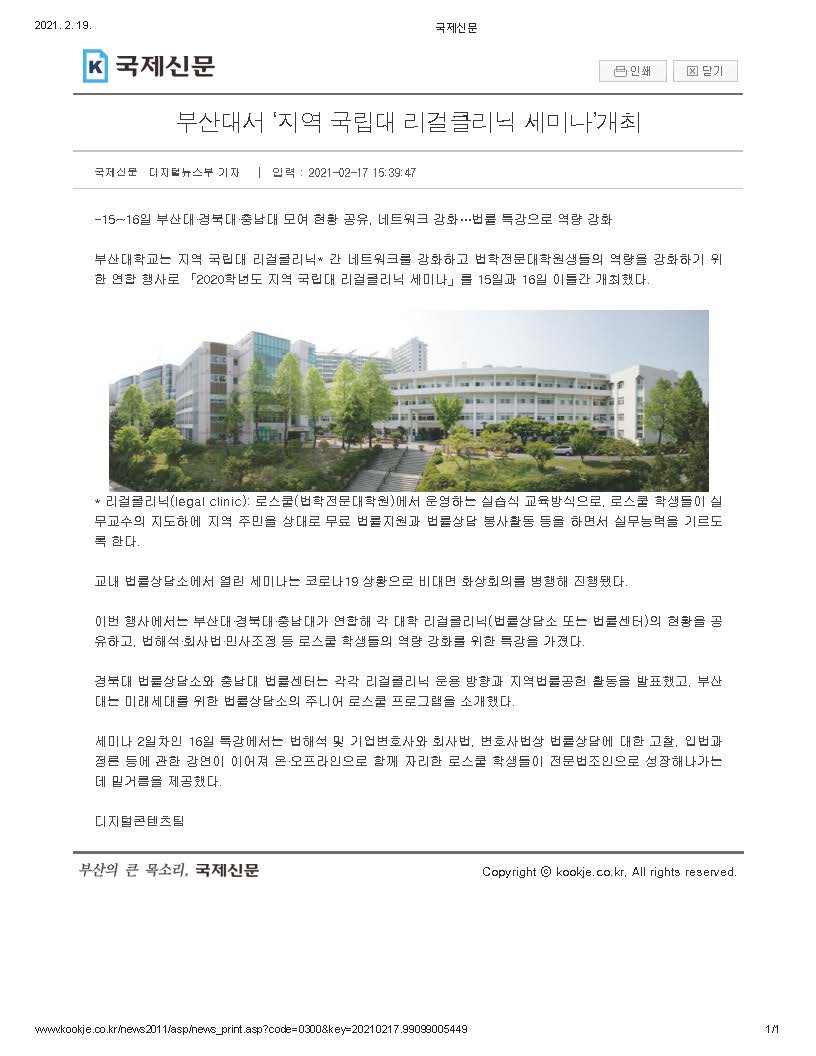 부산대 법률상담소, '제2회 주니어 로스쿨' 온라인 개최법률상담소 2021-02-10 14:53:44.593